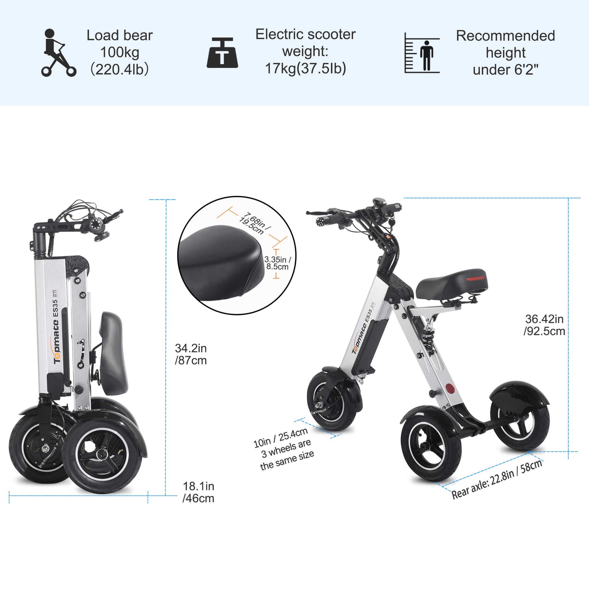 TpMate ES35 Powered Mobility Scooter 3 Wheels Foldable Trike for Adult Seniors